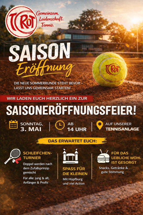 Bitte meldet euch vorher via E-Mail an tennisclub@tc-rot.de, an welchem der Termine ihr helfen könnt. Für Essen und Getränke ist gesorgt.