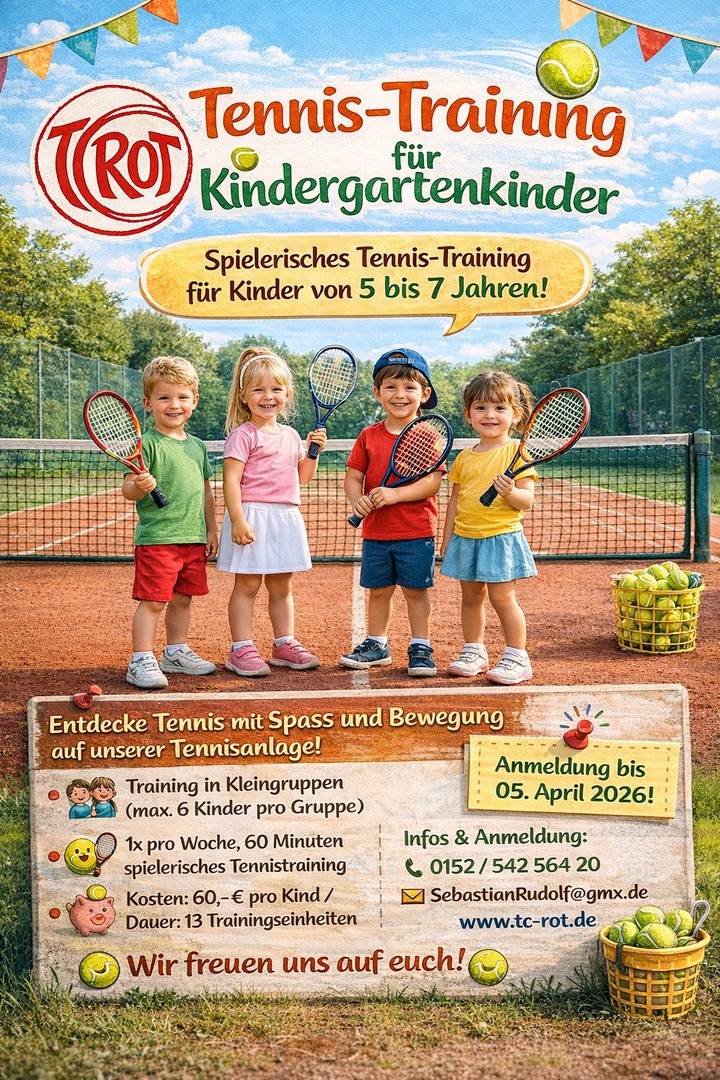 Entdecke die Welt des Tennissports spielerisch mit Kindergarten-Tennis beim TC Rot! Unser Angebot richtet sich an Kinder im Alter von 5 bis 7 Jahren und hilft ihnen